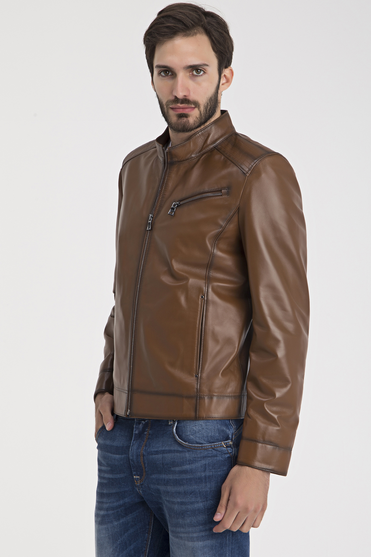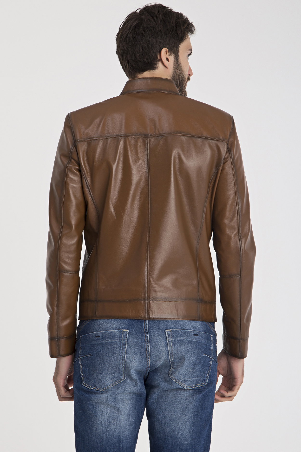 IPARELDE Light Brown Men Leather Jacket - IPAM88